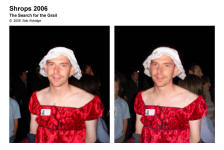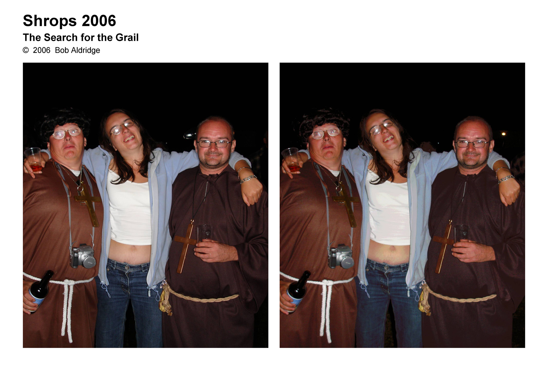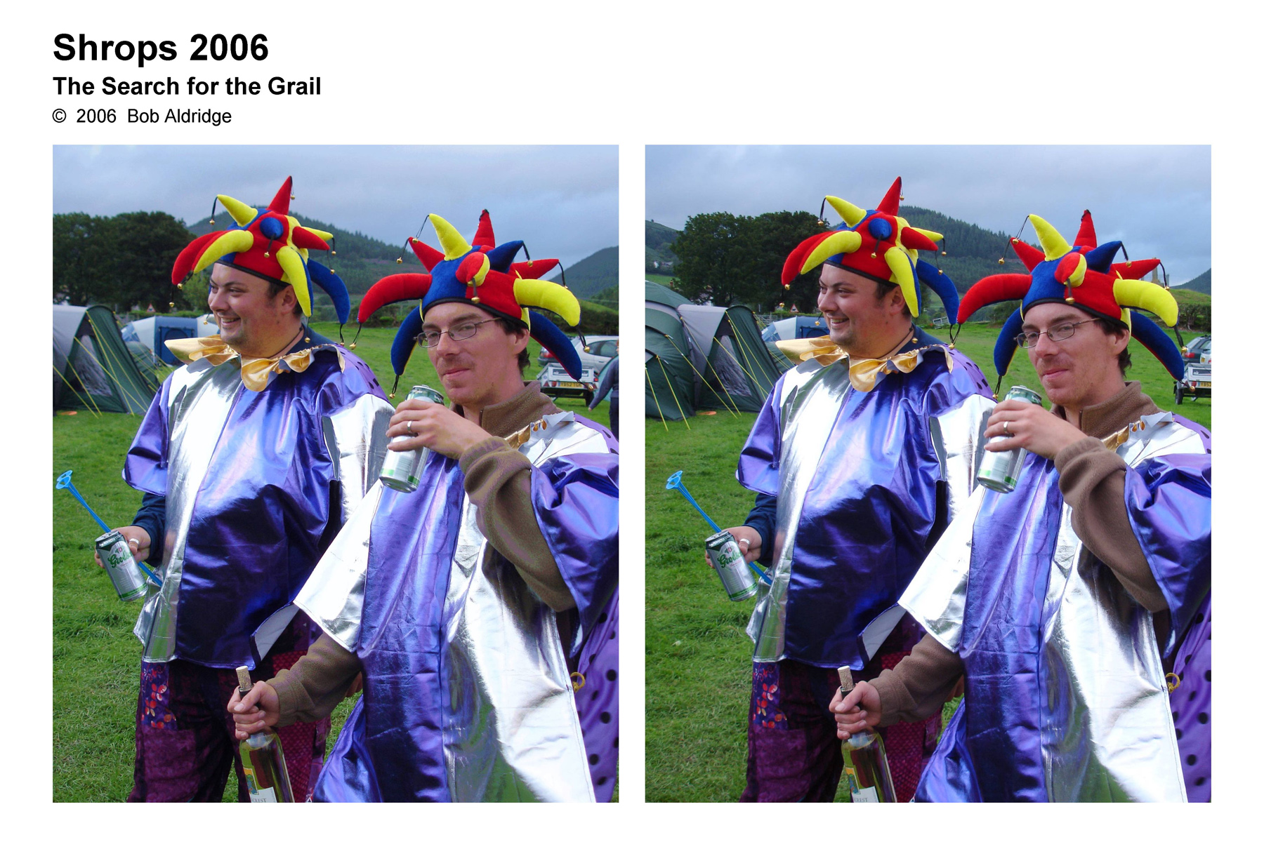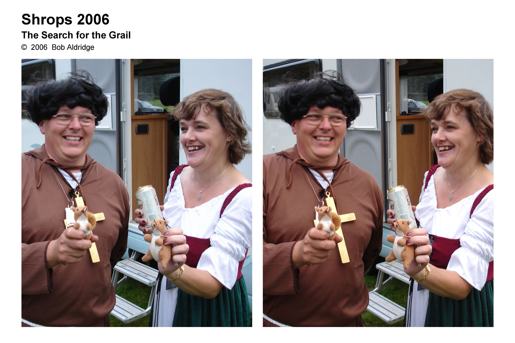they chose a nice field in Llangollen. The official cache page can be found on www.Geocaching.com I have started putting my stereo images in the gallery below. These are set out to print as 4 x 6 inch cards for viewing with the Loreo Lite viewer (some people will be able to "free view" these images in 3-D). I can supply the viewers at £2 each plus a stamped addressed return envelope. Each file is 1200 x 1800 pixels, to print on a 300DPI printer. Many supermarkets etc have machines that can do this - just click on the thumbnails and grab the images that you want... After the Hog was roasted, the King & Queen had been crowned and much intoxicating liquid had been consumed the MonkKing proposed a trip to the Abbey. The evidence can be found here